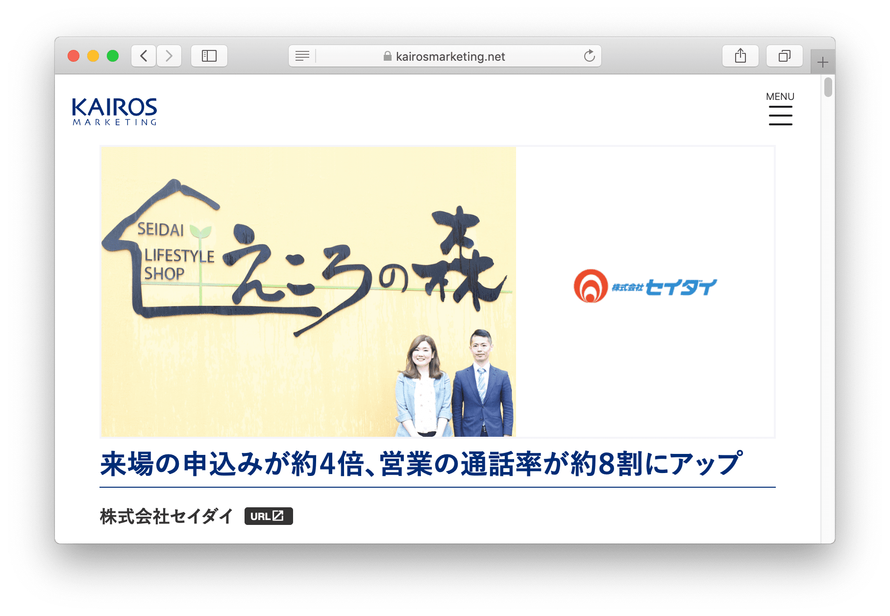 マーケティングオートメーション「Kairos3」の導入事例に、株式会社セイダイさまのインタビューを公開いたしました。